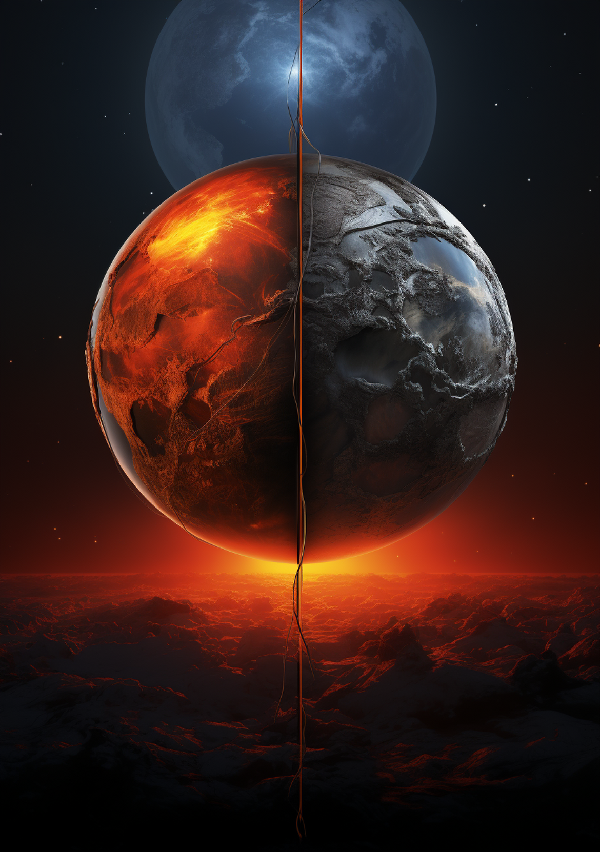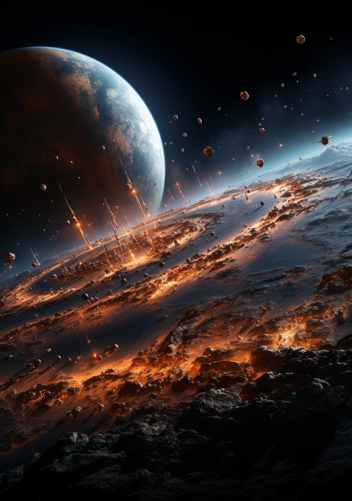 Nell’aria si diffusero striature di freddo cobalto. Gli edali più vicini ai geyser blu vennero congelati all’istante. A contatto con l’aria, l’idrogeno divenne liquido e piovve coprendo ogni cosa.